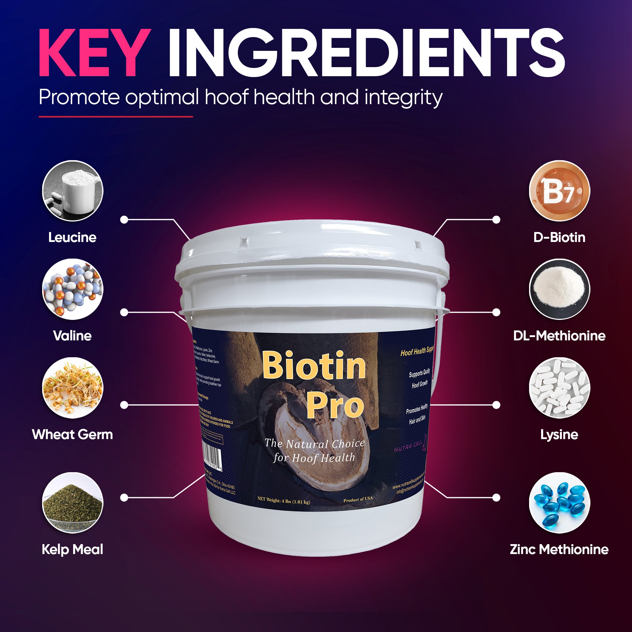 Hoof Growth: Promotes healthy hoof growth and maintains skin and coat health.